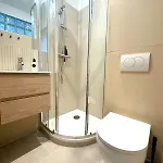 لضمان راحتك، يتمّ توفير المرحاض المنفصل والدوش في الشقة. ستجد أيضًا مجفف الشعر وملاءات الحمام والمناشف.